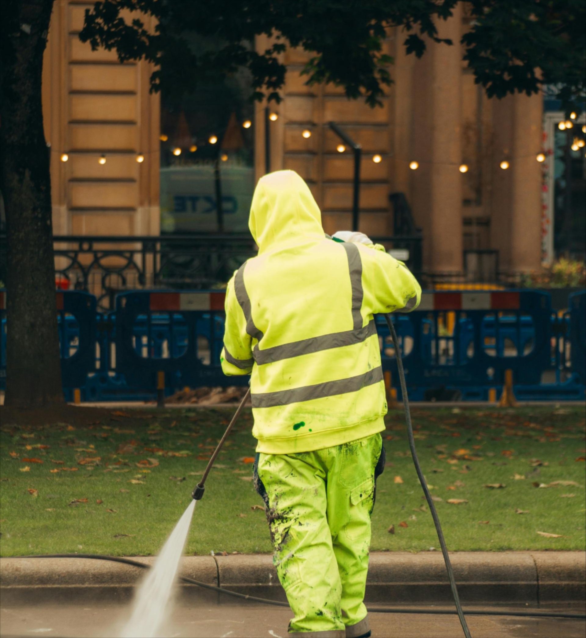 Best for hard surfaces like driveways, walkways, and patios, pressure washing uses high-powered water to remove dirt, mold, and grime. It’s the perfect solution for tough stains on durable surfaces such as concrete and brick, making it ideal for both residential and commercial properties needing a deep clean.